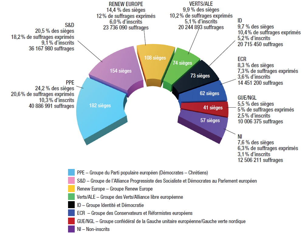 Élections européennes 2019. Le poids des électorats politiques comparé au poids électoral des groupes parlementaires