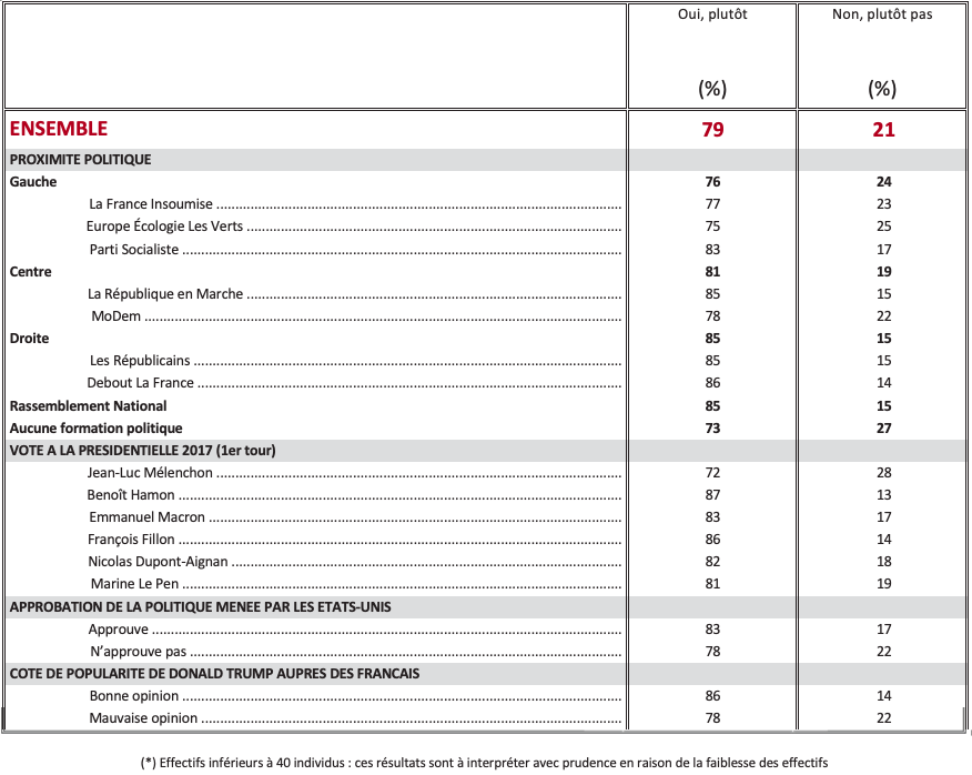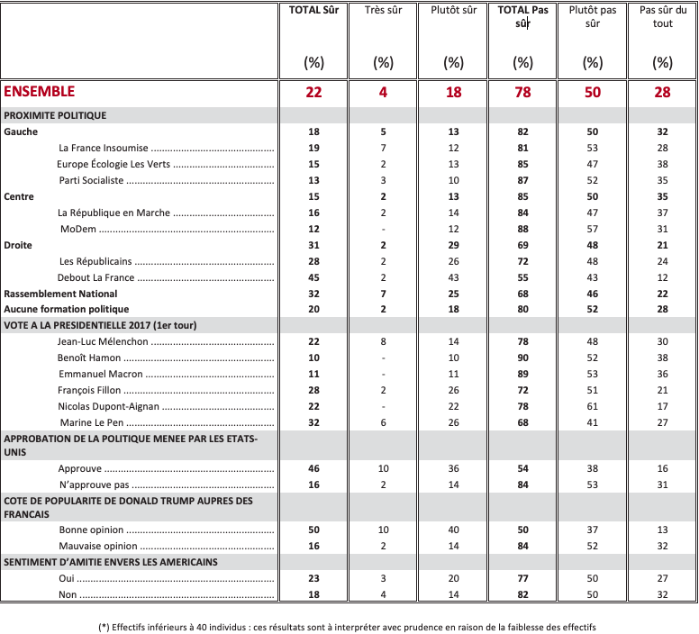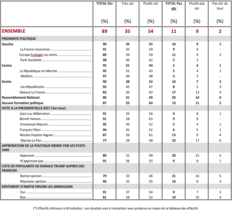 Question : Indépendamment de Donald Trump, diriez-vous que vous éprouvez de l’amitié pour les Américains ?