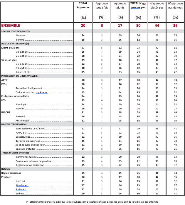 Question : D’une manière générale, approuvez-vous ou n’approuvez-vous pas la politique menée par les États-Unis ?
