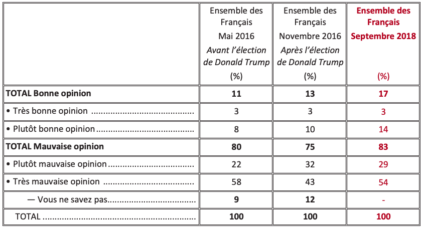 La cote de popularité de Donald Trump auprès des Français