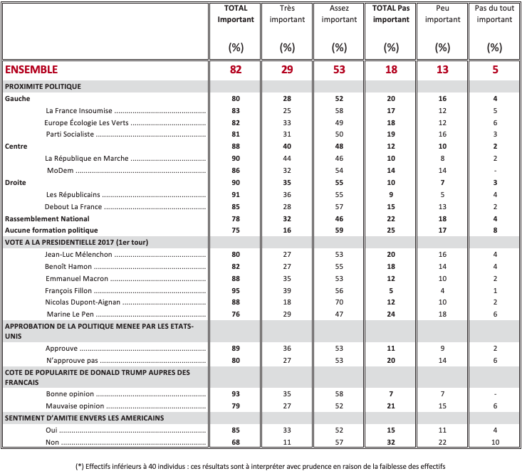 Question : Certains considèrent aujourd’hui que la relation entre l’Europe et les États-Unis de Donald Trump connaît une crise profonde. D’après vous, pensez-vous qu’il est important ou pas important de préserver cette relation pour les années à venir ?