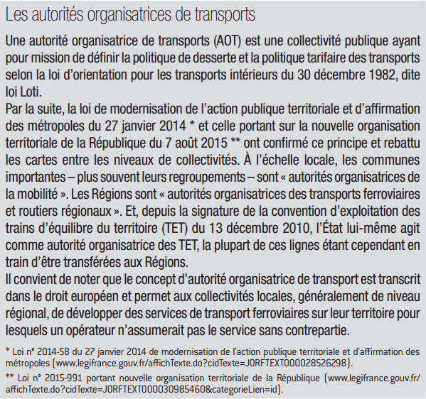 C’est au regard de ces conséquences, pour redynamiser l’offre de desserte des territoires en région et restaurer sa qualité comme son attractivité commerciale, que la régionalisation des transports du quotidien, assurés par les trains express régionaux (TER), a été initiée. Cette évolution a constitué une première révolution pour le système ferroviaire français, rompant le face-à-face ouvert en 1938 entre l’État et la SNCF.