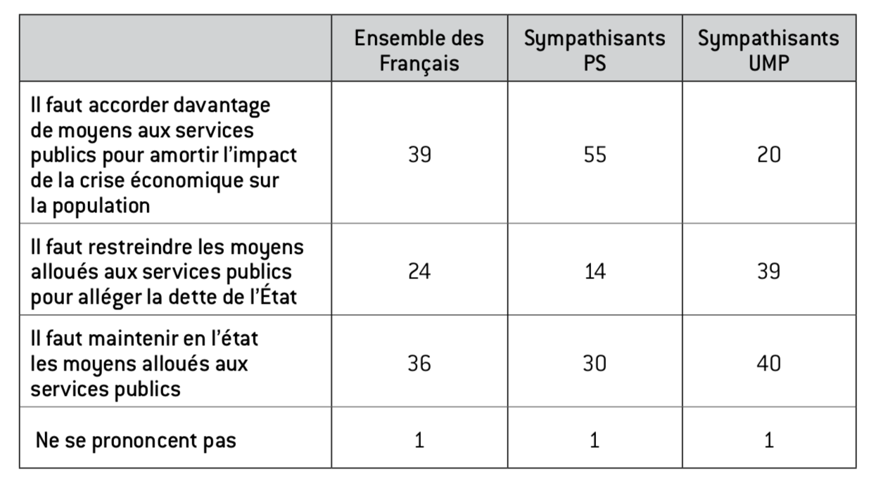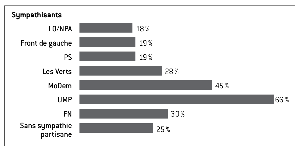 comme « un moyen de financer des secteurs clés de l’économie4 ». Comme le montre le graphique 1, seuls les sympathisants UMP étaient majoritairement convaincus.