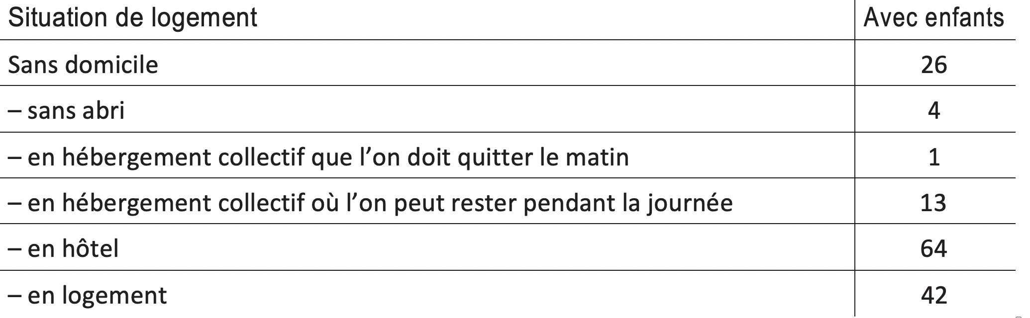 Tableau 1 : Les sans domicile avec enfants en 2012 (en %)