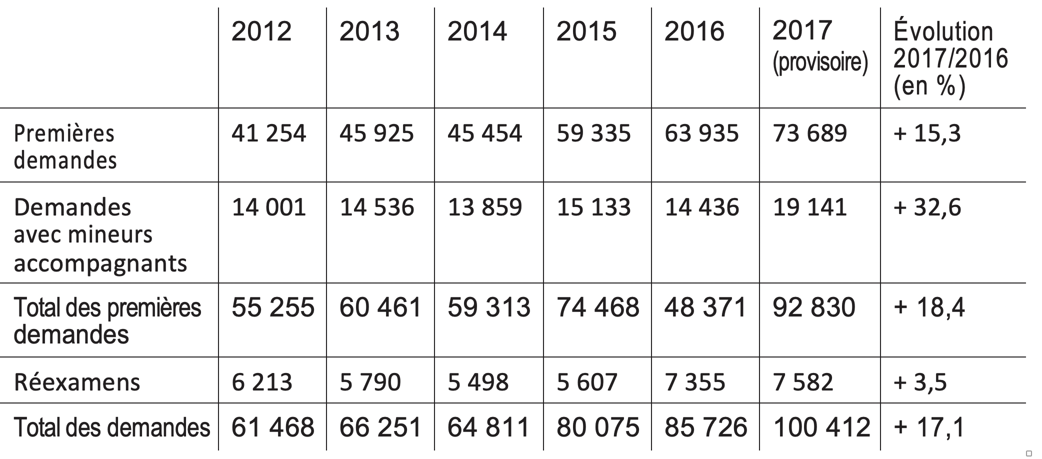 Tableau 3 : Les demandes d’asile