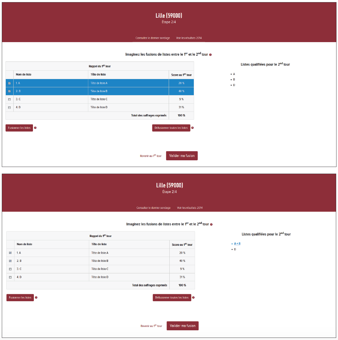 À la fin de cette étape, l’internaute a donc déterminé les listes en lice pour le 2nd tour.
