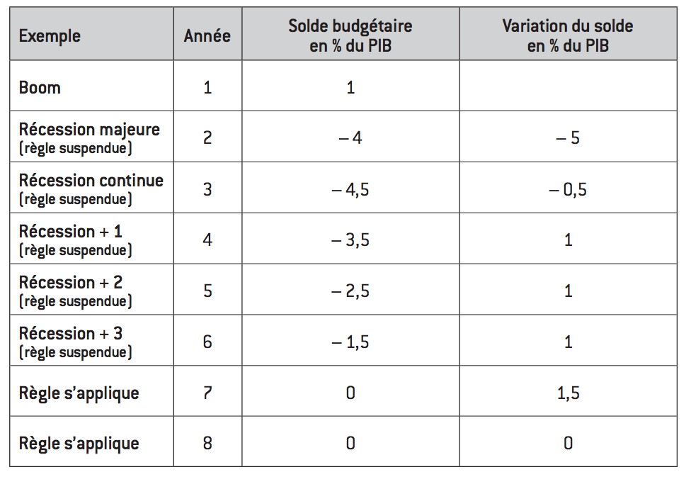 Tableau 1 : fonctionnement de la règle budgétaire en cas de récession extrême.