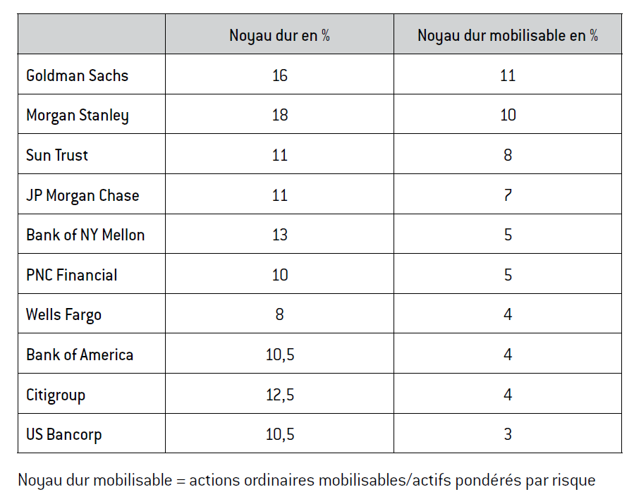- Le renforcement du noyau dur des fonds propres, c’est-à-dire la part des actions ordinaires dans le niveau minimum exigé. Jusqu’à maintenant, cette part pouvait ne représenter que 2% du niveau minimum exigé et calculé sur la base des risques encourus ;