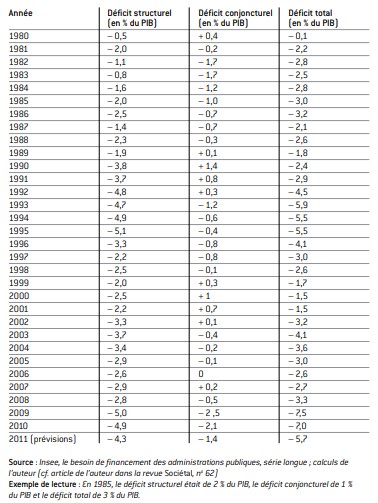 La seule période durant laquelle la tendance au creusement du déficit structurel s’est inversée est la période du plan Juppé, en 1995. Celui-ci a permis un redressement de 3 points de PIB du déficit structurel entre 1995 et 1997. Mais force est de constater que ce fut au prix d’un mouvement social sévère et d’une défaite électorale du promoteur de la politique d’austérité et de son parti.
