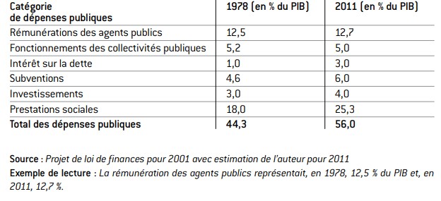 Tableau 4 : Tableau comparatif des dépenses publiques en France entre 1978 et 2011