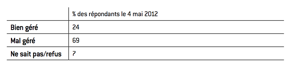 Tableau 3 : Opinion de la population quant à la gestion4 du conflit étudiant par le gouvernement (4 mai 2012)