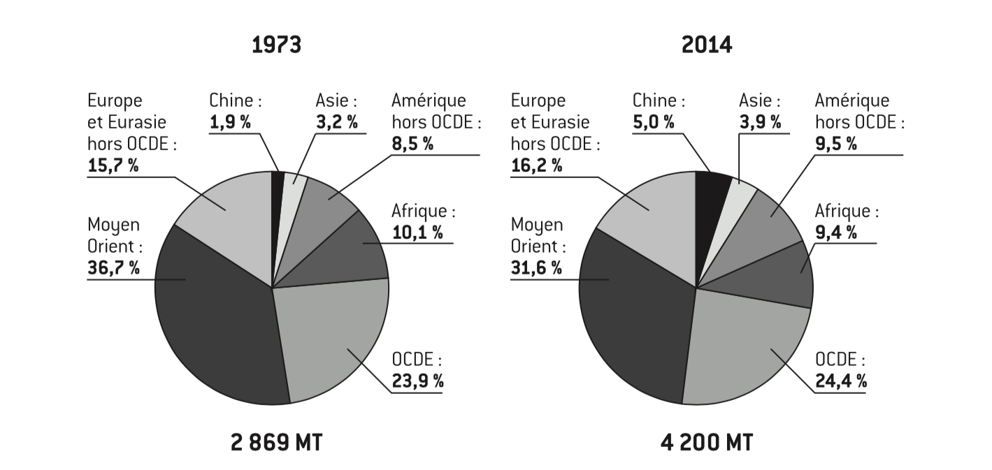 Les tensions politiques alimentées par le pétrole sont multiples et s’additionnent à des rivalités stratégiques, idéologiques et religieuses. En 2016, les exemples sont nombreux. L’opposition Arabie saoudite/Iran, sunnites/chiites, est exacerbée par le retour de l’Iran sur les marchés pétroliers. L’Iran représente à nouveau 10% de la production des pays de l’OPEP, contre 31% pour l’Arabie saoudite. Les tensions en mer de Chine méridionale entre la Chine et les Philippines sont directement liées au contrôle des nappes pétrolifères de Reed Bank autour des îles Spratleys. Le retour des États-Unis sur le marché pétrolier avec l’exploitation, controversée, des schistes bitumineux leur confère une nouvelle liberté en politique étrangère. L’équilibre mondial doit être analysé à travers la situation nouvelle qui fait, en 2014, de l’Arabie saoudite, de la Russie et des États-Unis les trois premiers producteurs mondiaux de pétrole, avec respectivement 12,9, 12,6 et 12,1%5. L’ambition hégémonique de Daech n’est alimentée que par son accès à l’argent du pétrole irakien écoulé en contrebande, pour un montant estimé entre 1 et 3 millions de dollars par jour.