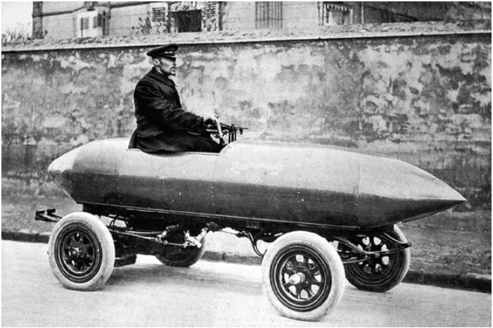 La citation de Zola en témoigne, la voiture électrique n’est pas une idée neuve. À l’aube du XXe siècle, trois types de motorisations s’affrontaient : la vapeur, en déclin ; l’essence, en plein essor ; et l’électricité, qui suscitait déjà beaucoup d’espoir. Mais si la technique du moteur électrique est assez rapidement maîtrisée, se pose le problème du stockage de l’électricité dans des accumulateurs au plomb qui pénalisent le poids total du véhicule et donc ses performances. Un opiniâtre créateur, Charles Jeantaud, participe sans succès à deux courses Paris-Bordeaux avec son véhicule électrique à traction avant. Il produit un véhicule électrique, la Duc, qui bat le premier record de vitesse à 63,15 km/h en décembre 1898. Ce record sera battu par un autre véhicule électrique devenu célèbre, la Jamais Contente de Camille Jenatzy, qui dépasse les 105 km/h le 29 avril 1899.