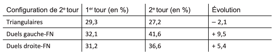Le FN a continué de progresser en duel mais moins fortement que par le passé