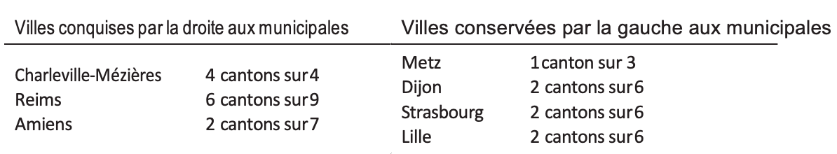 Tableau 8 : Grand Nord-Est : nombre de cantons remportés par la droite dansdifférentes villes