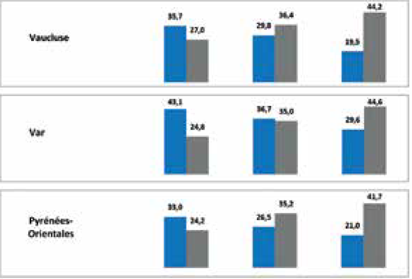 Tableau 4 : 1981-2015 : évolution des rapports de force dans certains départements méditerranéens (en %)