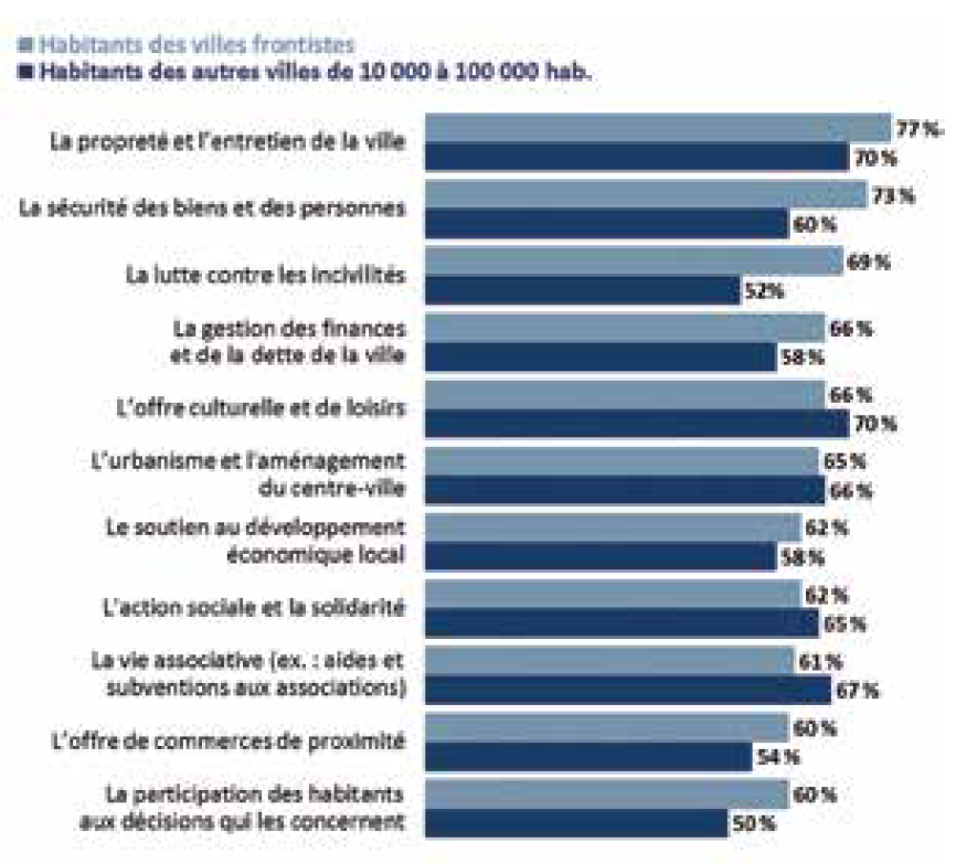 Dans le détail, il apparaît que c’est en matière de lutte contre les incivilités et l’insécurité, de propreté mais aussi de gestion des finances de la ville que les municipalités frontistes creusent l’écart avec leurs consœurs, soit autant de thèmes sur lequel le Front national a mis l’accent depuis des années.