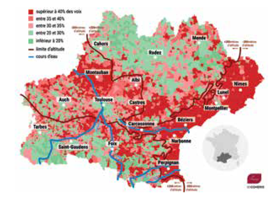 Carte 5 : Score de la liste Front national au 2e tour des élections régionales 2015 en Languedoc-Roussillon-Midi-Pyrénées