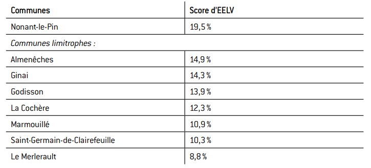 tableau 4 : Le vote en faveur d’eeLV à Nonant-le-Pin (orne) et dans les communes voisines