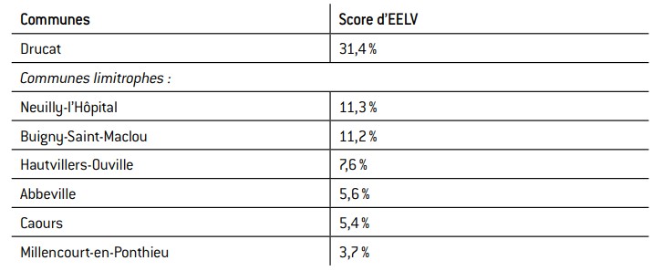 Tableau 5 : Le vote en faveur d’eeLV à Drucat (somme) et dans les communes voisines