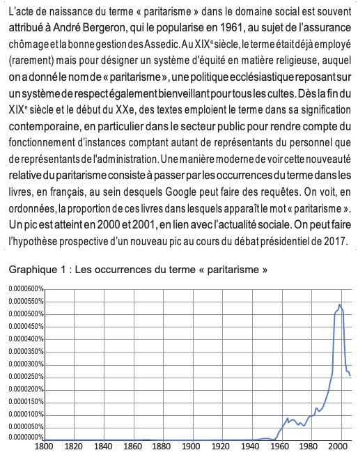 Pour une lecture critique de la canonisation du paritarisme, voir Bernard Gibaud, « Paritarisme, démocratie sociale : aperçus historiques sur une liaison hasardeuse », Mouvements, n° 14, mars-avril 2001, p. 38-45.