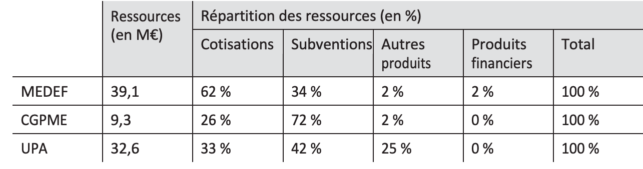 Tableau 2 : Les ressources des organisations patronales moyenne 2011-2013