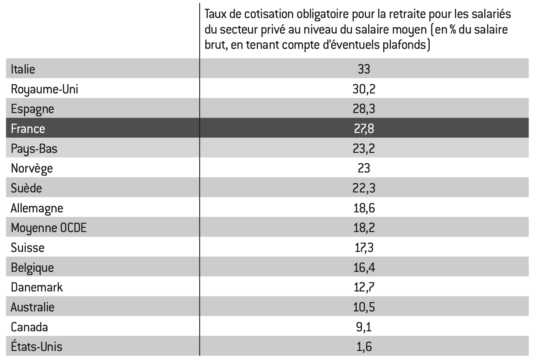 Cette générosité se traduit naturellement par des taux de cotisations retraite obligatoires sur les salaires particulièrement élevés