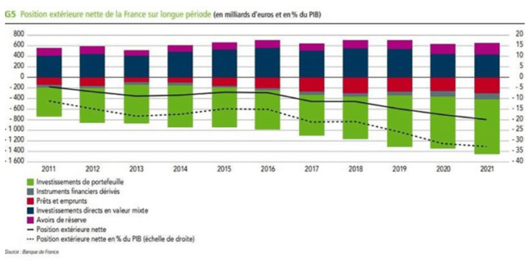 Il s’agit d’une part du fonds de réserve des retraites (FRR) censé « sanctuariser » les excédents de cotisations réalisés à la fin des années 1990 et au début des années 2000 qui se monte aujourd’hui à 21 Mds (milliards) d’euros soit environ 0,6% du PIB et d’autre part les réserves accumulées par le régime de retraites complémentaires ARRCO/AGIRC, pour 90 Mds d’euros en 2022 (soit 2,5% du PIB).