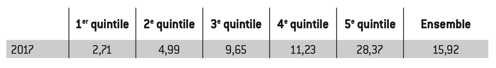 Taux d’épargne des ménages ordinaires selon le quintile de revenu disponible des ménages en 2017 en France (en %)