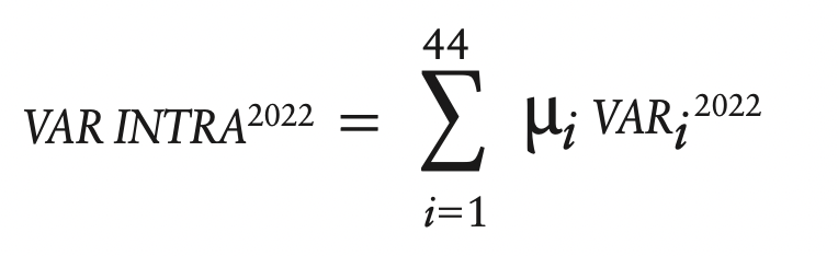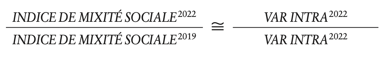 En supposant que la variance totale de l’IPS est approximativement stable entre 2019 et 2022, la formule précédente permet d’écrire :