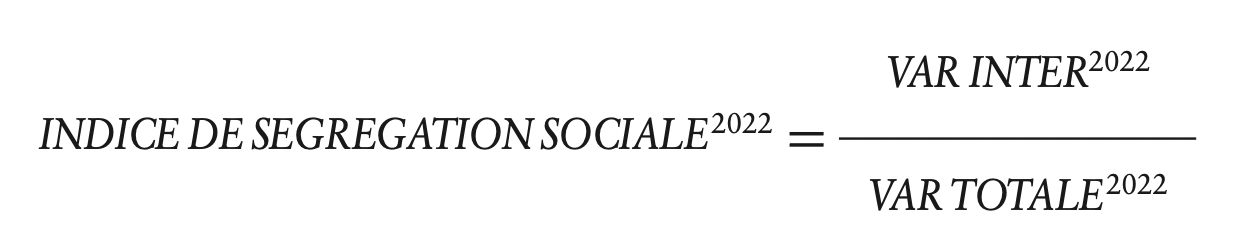L’indice de ségrégation sociale est défini comme le ratio de la variance interlycée et de la variance totale :
