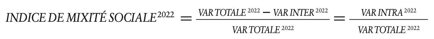 L’indice de mixité sociale est donc le ratio de la variance intralycée par la variance totale.