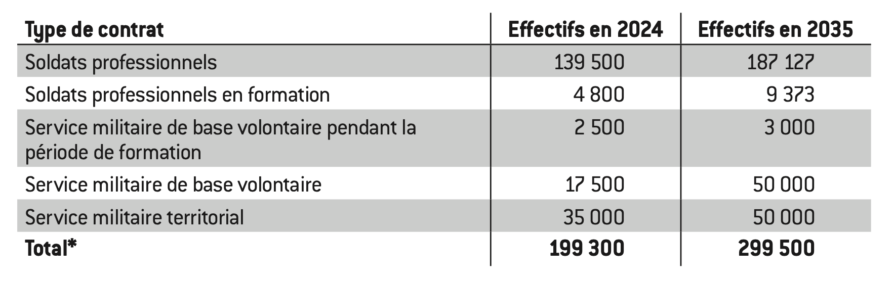 Tableau 5 : Les forces armées de la République de Pologne (2024-2035)