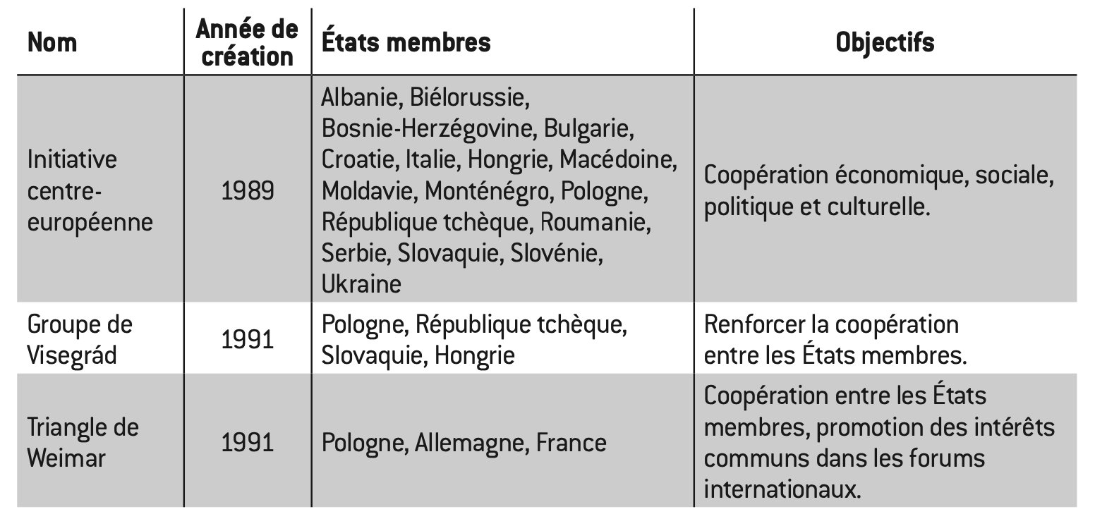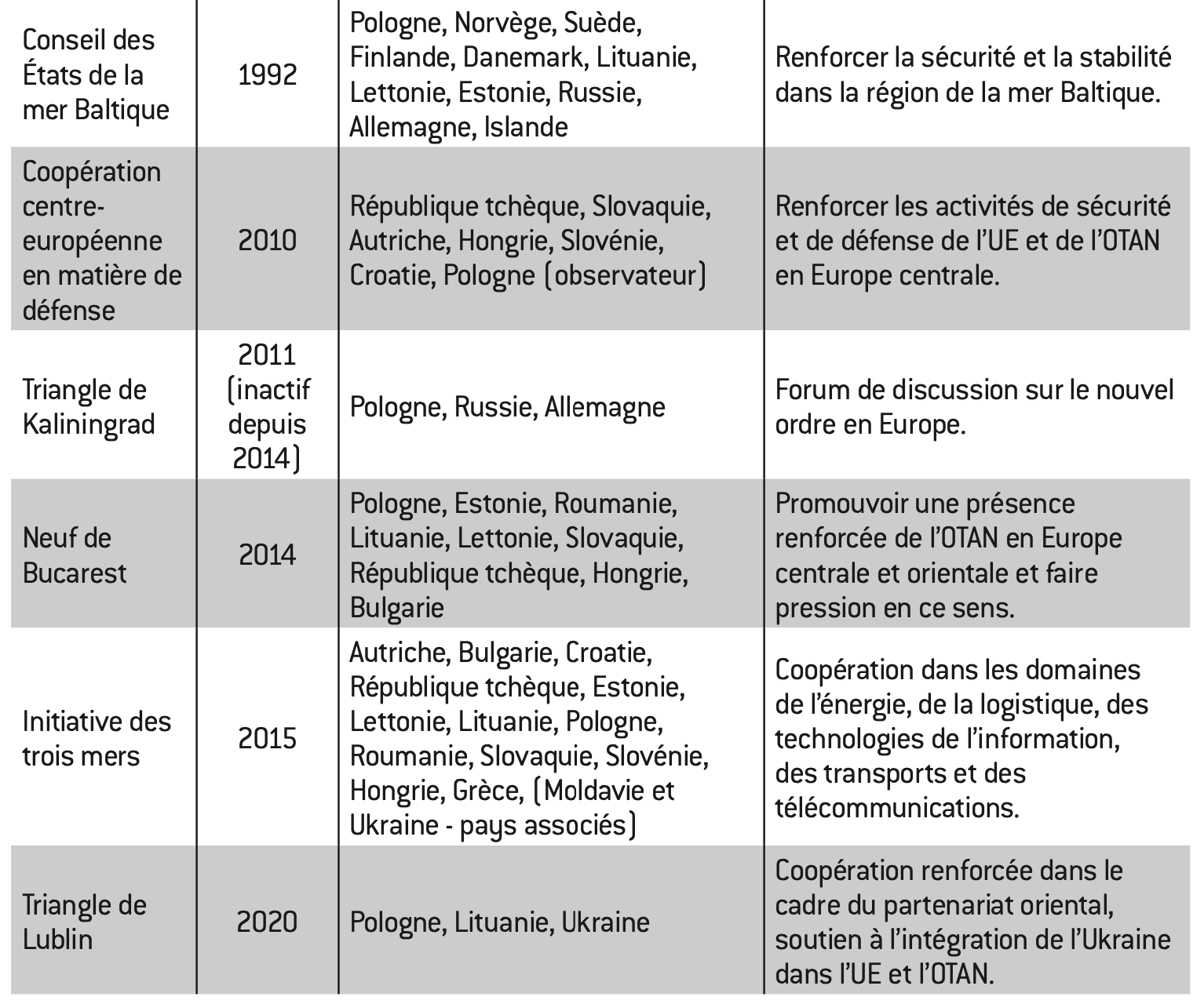 Tableau 6 : Principales participations de la Pologne à des organisations/forums de coopération régionale