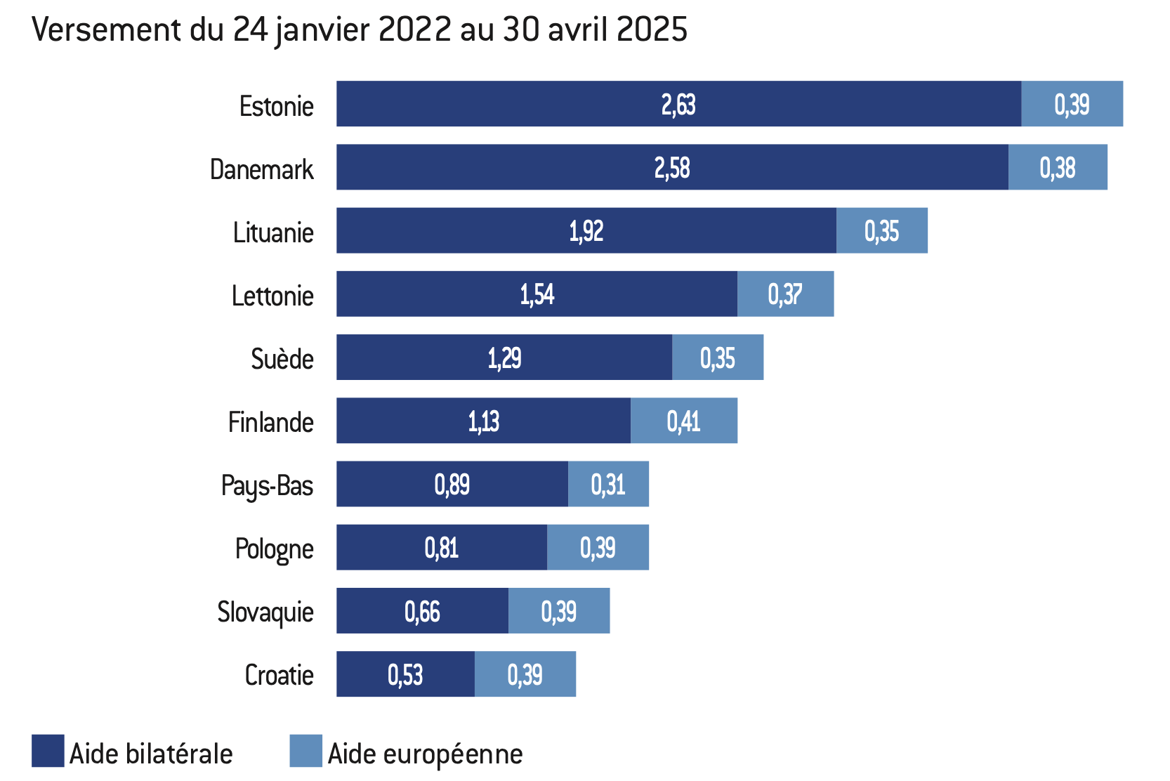 Graphique 6 : Soutien gouvernemental à l’Ukraine par pourcentage de PIB et d’aide européenne