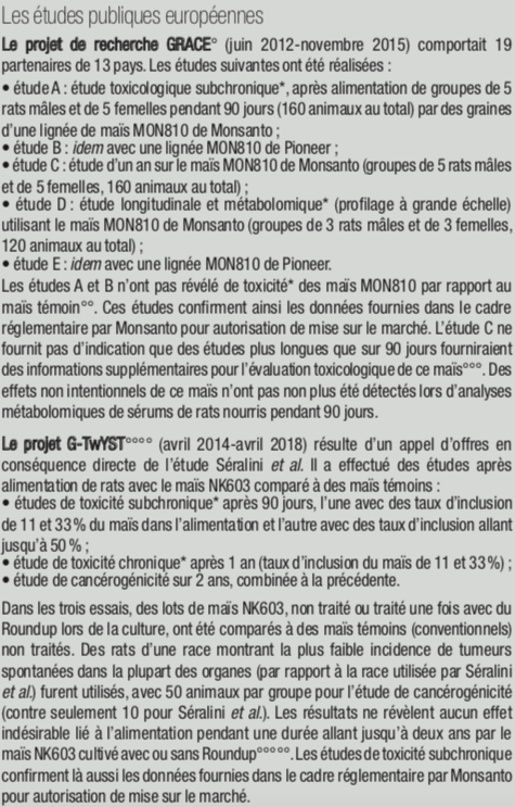 Voir Marcel Kuntz, «How anti-GMO research is manufactured: Challenging two Séralini-lab studies that fueledrenewed safety concerns over GMOs and glyphosate», geneticliteracyproject.org, 24 septembre 2018.