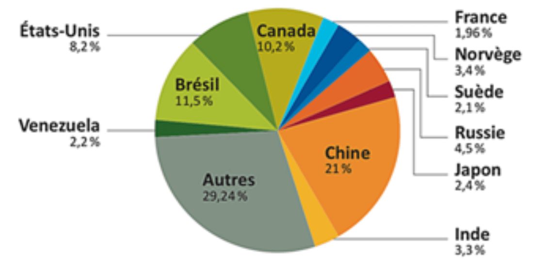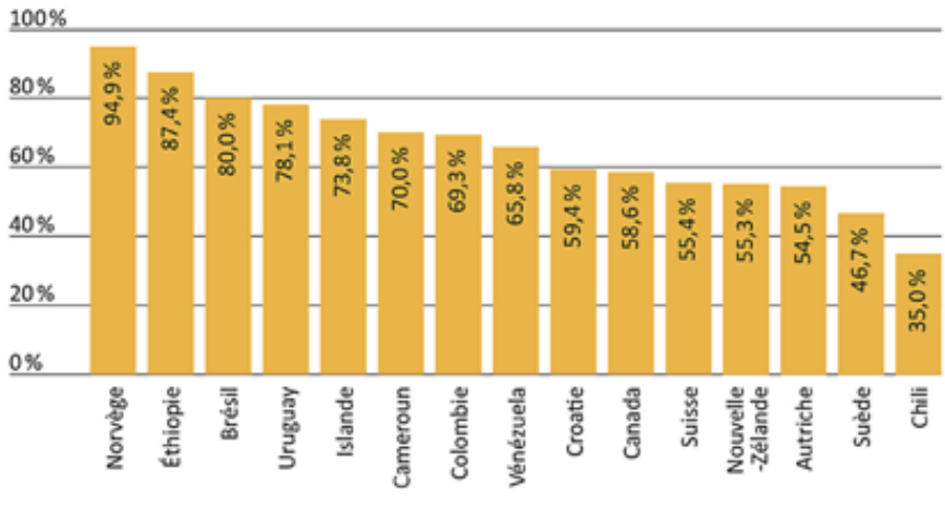 Part de l’électricité produite par l’énergie hydraulique dans quelques pays
