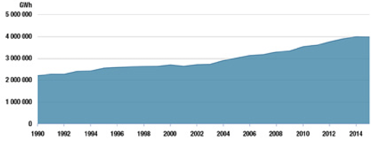 Production d’énergie hydroélectrique dans le monde (1990 – 2015)