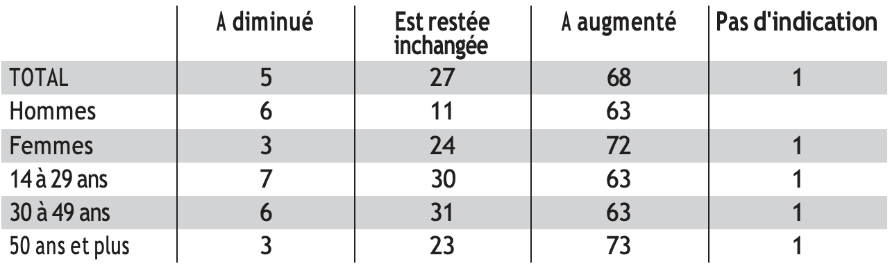 La criminalité : Selon vous, comment la criminalité a-t-elle évolué en Autriche au cours des dernières années ? (en %)