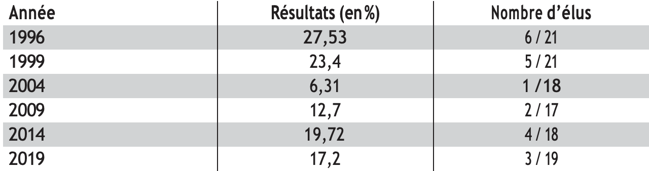 Les résultats du FPÖ lors des élections européennes (1996-2019)