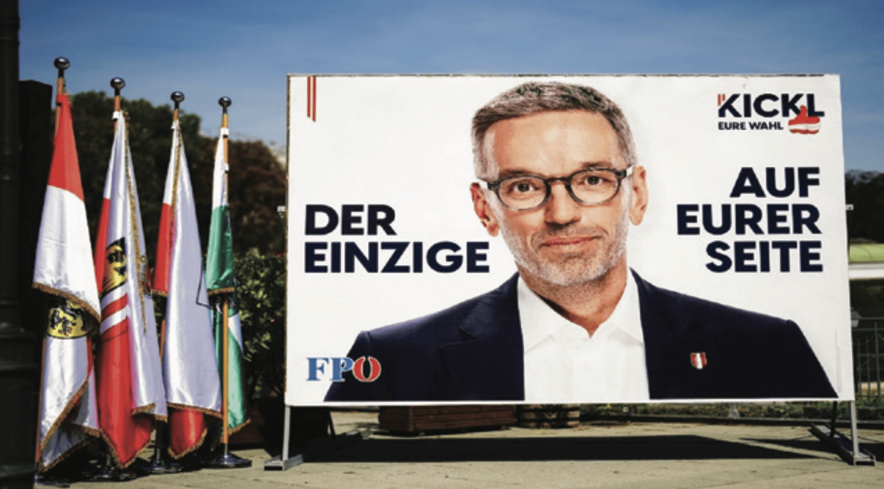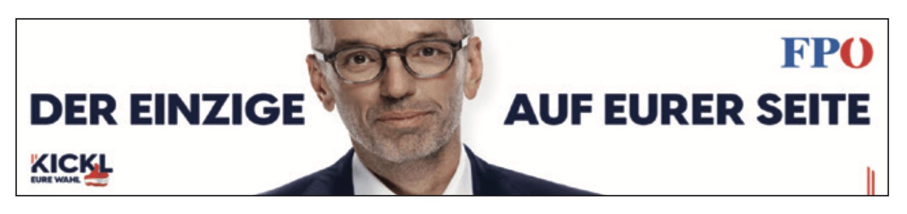 En septembre 2024, le FPÖ a choisi une nouvelle stratégie de communication centrée sur un Kickl à l’air débonnaire et souriant. Il choisit de nouvelles couleurs ; le blanc a ainsi remplacé le bleu et le rouge qui dominaient jusqu’alors. Kickl sourit et les observateurs parlent de ses « yeux bienveillants ». Ce choix a pour but de contraster avec le programme électoral très radical du parti (voir infra). Le chef du parti se veut « un père » de la patrie, « bienveillant » mais ferme75.