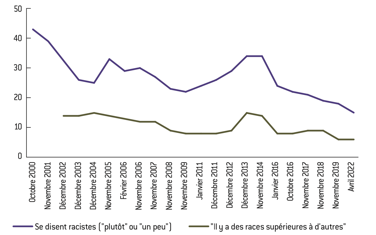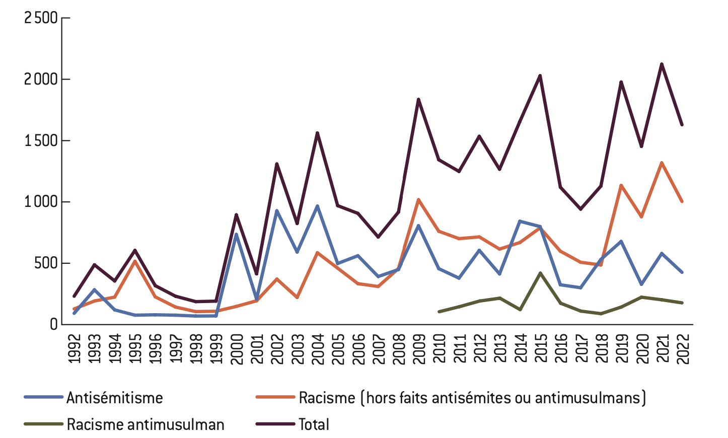 Graphique 1 : Le racisme déclaré en France (2000-2022)