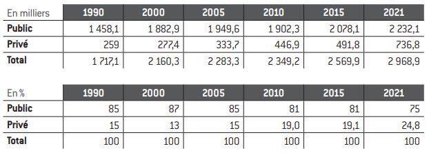 Un étudiant sur quatre est inscrit dans un établissement privé. Au cours de la décennie 2010-2020, les effectifs post-bac ont globalement augmenté de 600000 étudiants et le secteur privé en a absorbé presque la moitié 1. La part du secteur privé est donc passée en dix ans, de 19,1% à 24,8% des effectifs globaux.