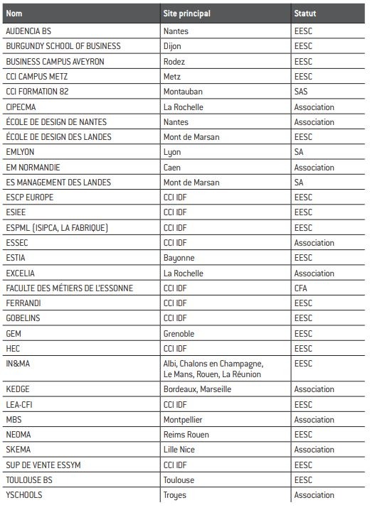 À l’inverse, les trois parisiennes, HEC, ESSEC, ESCP, n’ont pas d’implantation régionale. Écoles « capitales », l’unicité de leur implantation est un marqueur de leur statut.