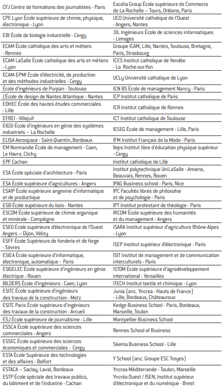 La Conférence des directeurs des écoles françaises d’ingénieurs (CDEFI). Elle représente plus de 200 écoles d’ingénieurs dont 53 privées.