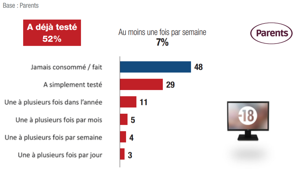 - les parents pour les jeux vidéo (64%) et pour le porno (50%).