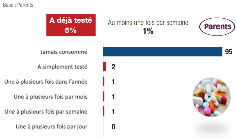 Notre enquête confirme l’importance de la consommation des produits licites problématiques que sont l’alcool et le tabac, chez les jeunes et chez les mineurs. Elle confirme également l’importance de la consommation de cannabis. Mais notre enquête révèle aussi une fréquence plus élevée qu’attendue des consommations de drogues dangereuses, y compris chez les très jeunes, drogues malheureusement trop souvent qualifiées de « festives » par les médias, ce qui pourrait tendre à les populariser, voire à les normaliser.