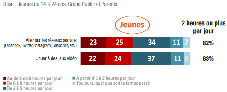 L’utilisation des écrans, des réseaux sociaux et des jeux vidéo est spectaculairement élevée chez les jeunes :