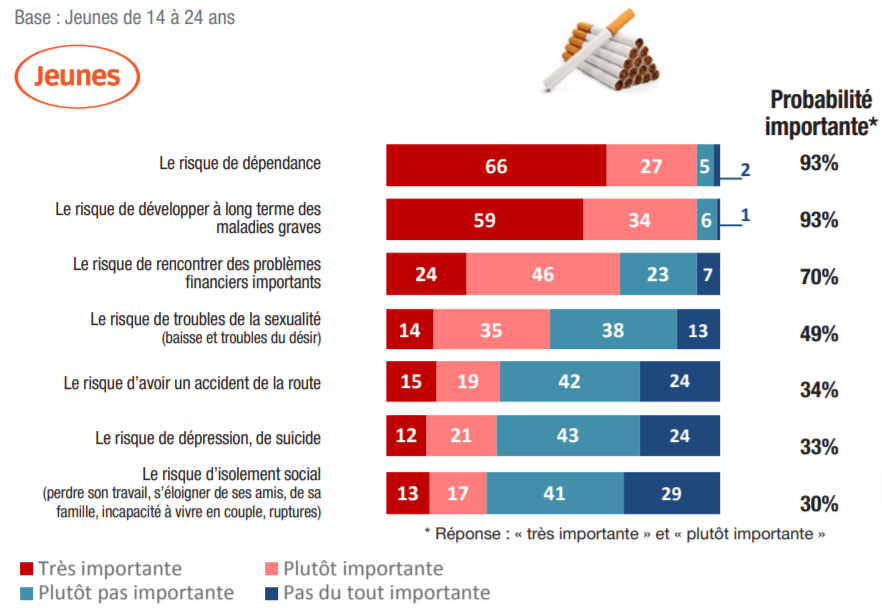 – 80% des 14-24 ans pensent qu’il est facile pour un mineur de se procurer des cigarettes ;