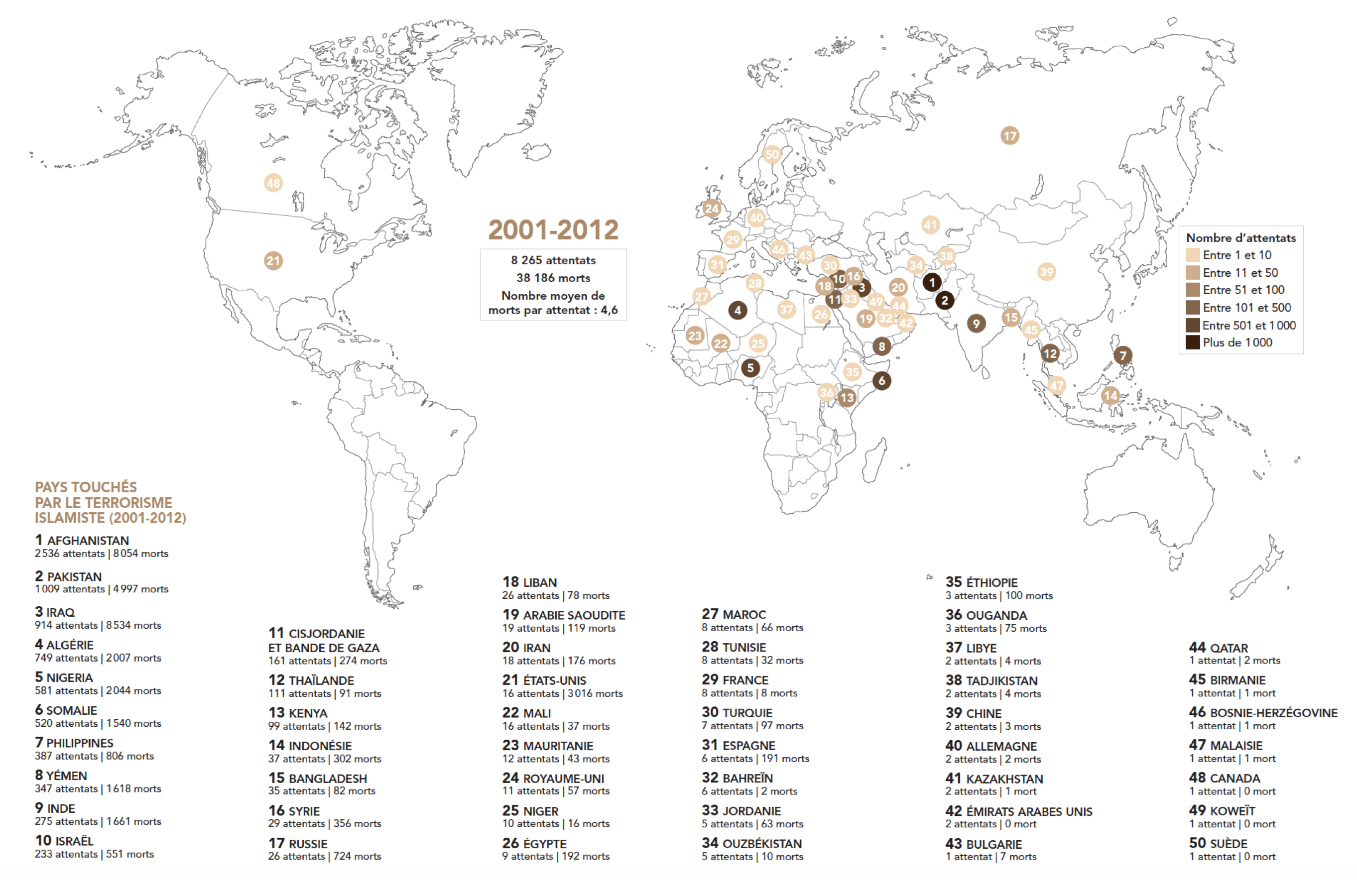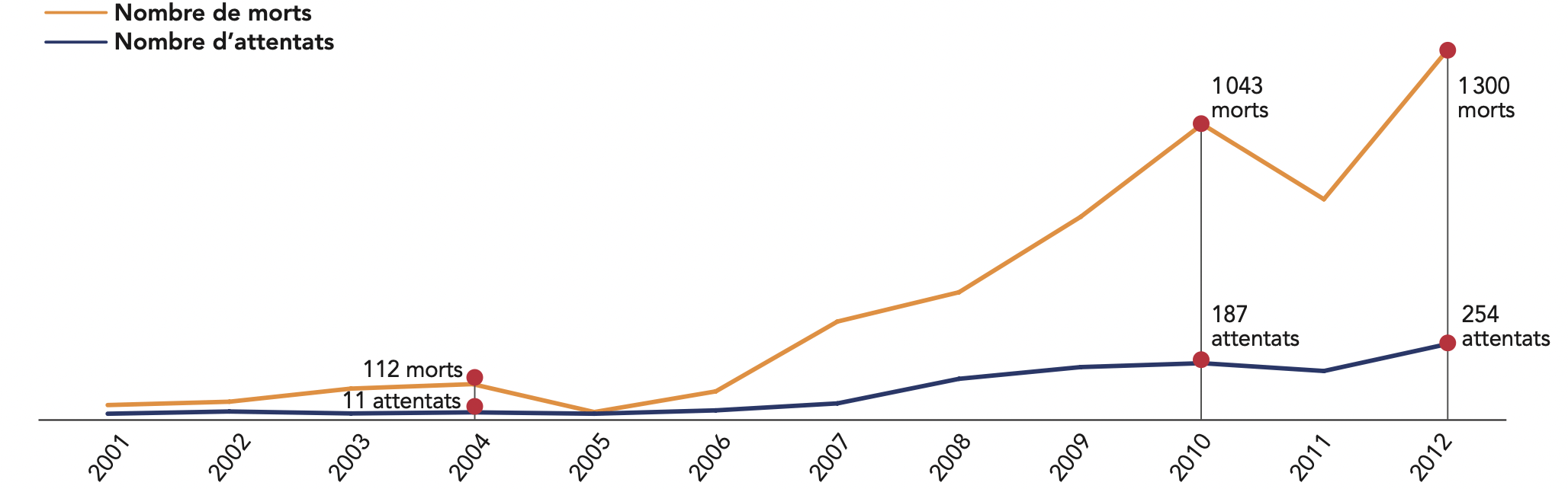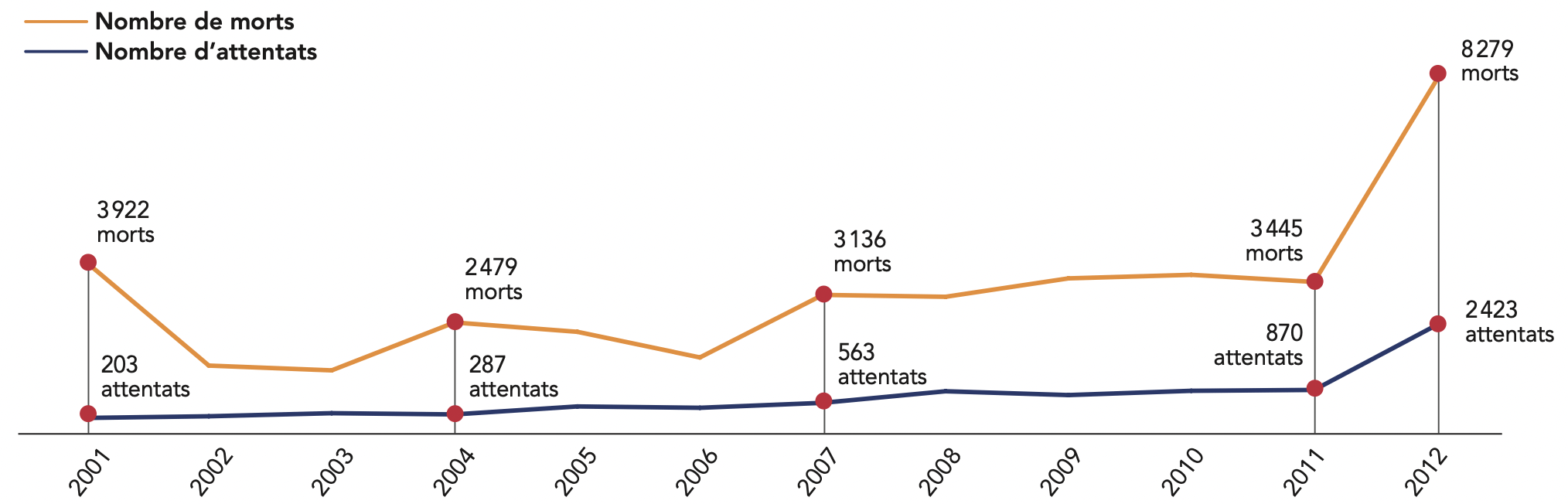 • 2001-2012 : 8.265 attentats et 38.186 morts.
